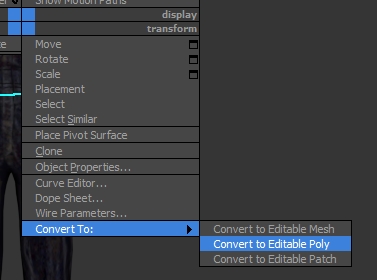 On the modify tab, you will now see an XForm modifier on top of the Editable Poly modifier. We need to collapse these so we just have one modifier again. Repeat an earlier process by highlighting and right clicking your model > Convert To: Convert to Editable Poly